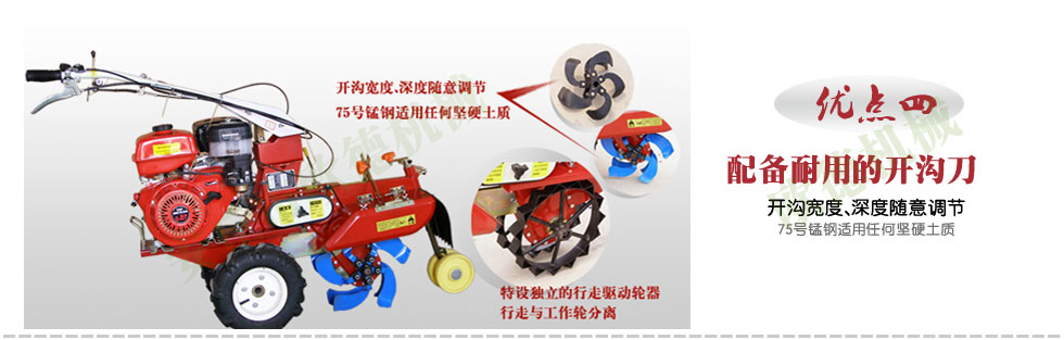主要產品: 開溝培土機/ 田園管理機/ 微耕機/ 起壟機/ 旋耕機/ 大型開溝機/ 葡萄埋藤機/ 大蔥收獲機/ 挖坑機/ 彌霧機/ 大棚卷簾機/